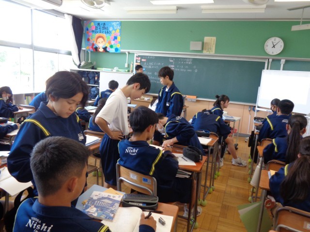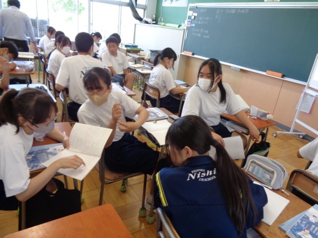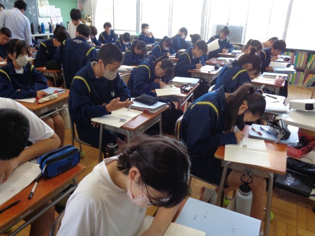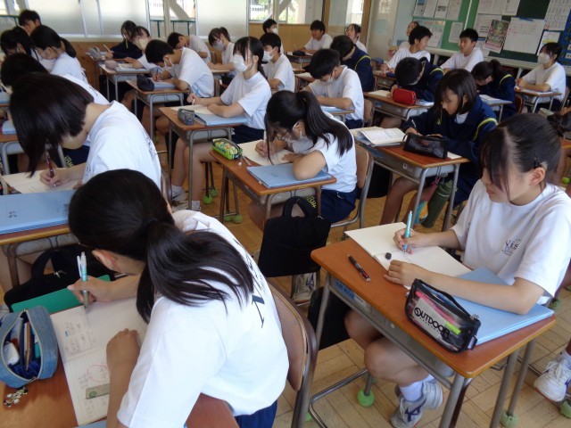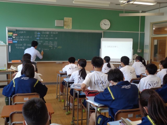 2時間めの2年3組と3時間目の2年1組の授業を見ていましたが、どちらのクラスも「これまで」連立方程式について学んだ事を使って課題解決に取り組んでいました。自分で考えたことを周りの友達と交流しながらクラスのみんなで課題解決の方法を確認しました。