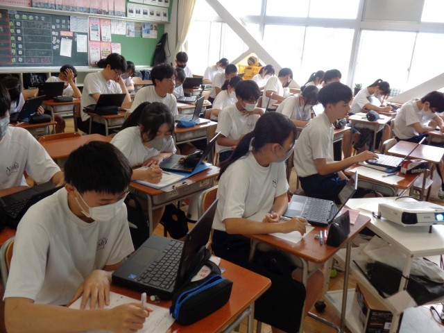 解き方についてまずは自力で頑張り、疑問点については周りの人と交流しながら、ワークシートの練習問題にみんな意欲的に取り組んでいました。