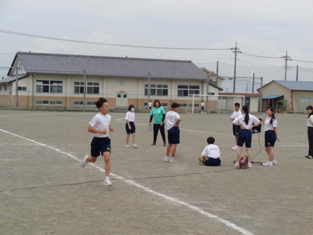 3年2組の保体の授業。新体力テストで5000メートル走を激走中。暑い中でしたが頑張って走りきりました。中3男子の5000メートルとは思えないほどの足の速さに目を奪われました。