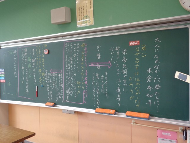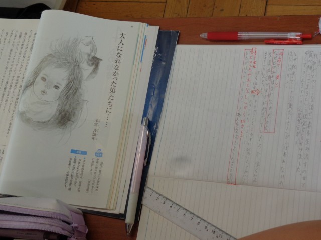 1年1組の国語では、米倉斉加年さんの「大人になれなかった弟たちに・・・・・・」を学習していました。太平洋戦争中のお話です。