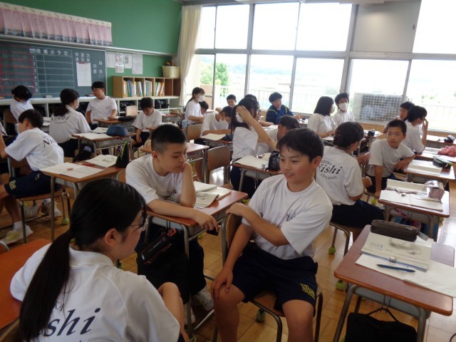 今日のめあては「なぜヒロユキは泣かなかったのだろうか」。生まれて間もない赤ちゃんのヒロユキが泣かない理由を考えることで、当時の生活の様子を実感できたのではないでしょうか。グループで交流したり、全体で意見を発表したりして、考えを深めていました。