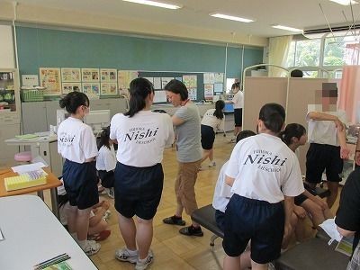 西中学校では、年度始めの保健関係の各種検診で、ボランティアさんにお世話になり、円滑な受診を実現できました。