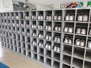 各教室を巡回する途中、下足入れがとてもきれいだったので思わずカメラを向けました。