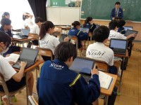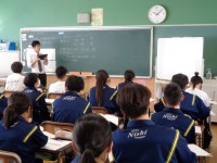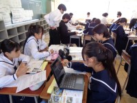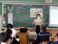 2年1組の技術科の授業では「ミニラジ」を製作中。細かい作業に真剣な表情で取り組ん...