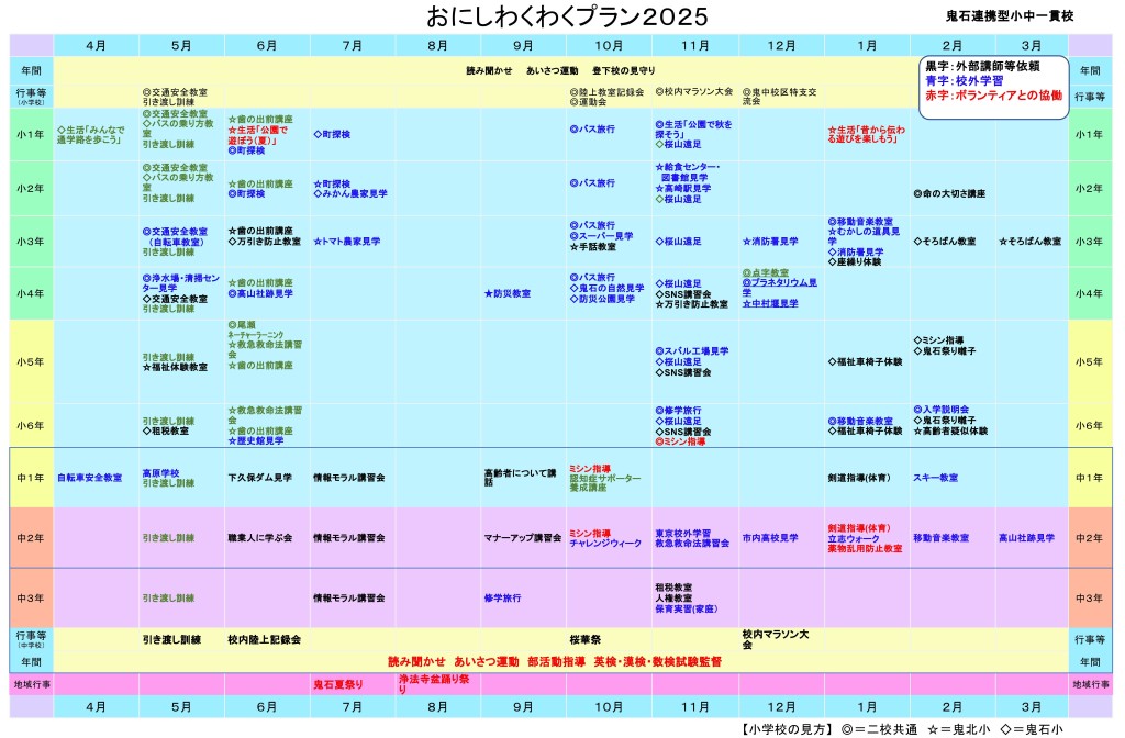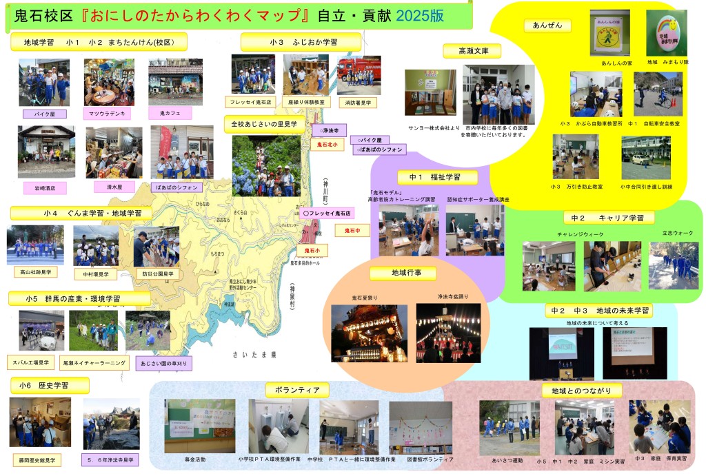 鬼石地区の地域学校協働本部の愛称を「おにしわくわくネットワーク」といいます。わくわくプランをもとに、学校と協働して教育活動の充実に努めています。
