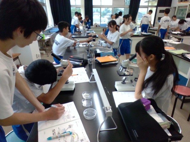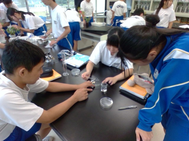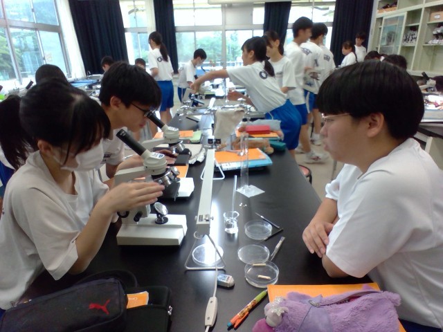 7月15日(火) 3年生(理科「花粉管の伸長」)【進んで学ぶ子】 公開日 2025/07/15 更新日 2025/07/15 できごと これまでに無性生殖について学習してきました。今日は有性生殖についてです。無性生殖と比べてどのようなちがいがあるのでしょうか。有性生殖では受精が関係しています。植物の受精はどのような仕組みなのでしょうか。インパチェンスやホウセンカを使って、花粉を柱頭に見立てたショ糖水溶液の中で観察しました。 +1