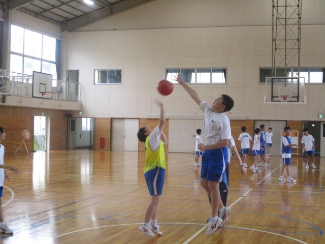 1年生の体育はバスケットボールでした。今日はゲーム形式で5on5や4on4を行いました。だいぶパスがスムーズに通るようになってきました。
