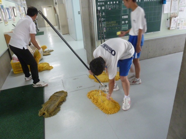 6校時は、全校生徒で大掃除です。1学期に自分たちが使ったところを丁寧にきれいにしていきます。普段行っている掃除では時間が足りず、十分きれいにすることができない場所まで念入りに掃除します。黙々と作業する姿を見て、感心しました。