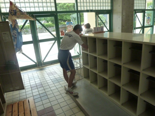蒸し暑い中ですが、生徒たちの大掃除は続きます。床を丁寧に拭く生徒、下駄箱のゴミを取る生徒、机の下にもぐりきれいにする生徒、みんなで協力しながら作業をする鬼中生。一生懸命に取り組む生徒たちの姿を見て、校舎をきれいに磨いているだけでなく、掃除をとおして、自分の心も磨いているのだと思いました。校舎もみんなの心もピカピカです。鬼中生のみなさん、ありがとうございました。そして、お疲れ様でした。