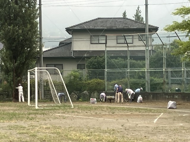 8月17日(日) 本町寿クラブの皆様が校庭の整備作業をしてくださいました