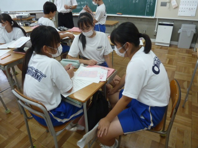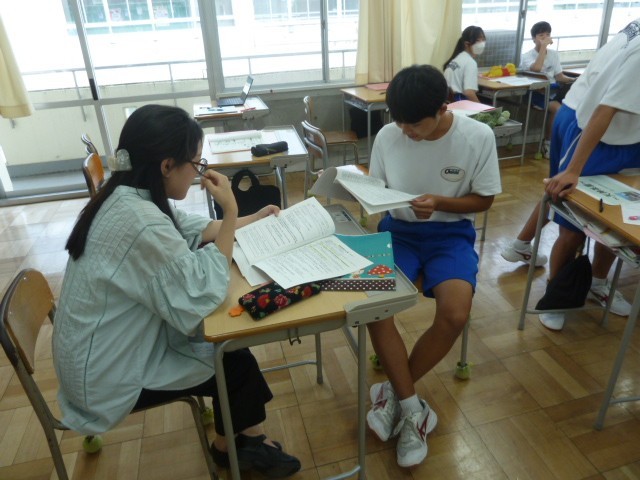 鬼石中学校では2年生で5日間の「チャレンジウィーク(職場体験学習)」を行っています。鬼石地区にある商業施設や公共施設などで5日間働く体験をします。生徒たちにとっては、楽しみであり、不安も感じる学習です。今年度は10月6日(月)から10日(金)までの予定です。生徒たちは、実際に働く前に各事業所へ行き、業務内容や注意事項、必要な持ち物など確認する事前訪問を行います。事前訪問をしてよいか各事業所に電話で確認をするのですが、その電話も生徒が行います。教室へ行ってみると、ちょうどアポイントメントを電話で取る練習をしているところでした。電話の仕方を学習ノートで確認をしたり、友達とどのようなことを確認すればよいかの確かめたりしていました。中には、先生を相手に電話のかけ方の練習をしている生徒もいました。しっかり準備をして、チャレンジウィークを成功させてほしいです。