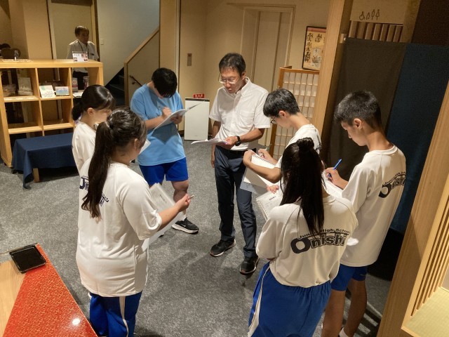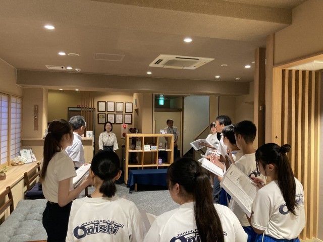 ロビーでは入校式を行い、旅館の方に挨拶をします。