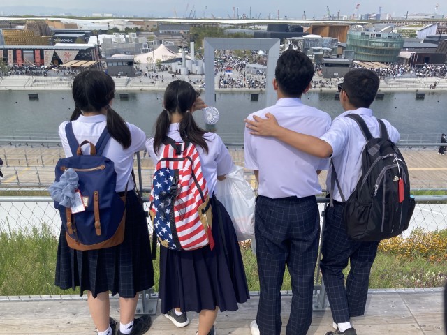 9月8日(月) 3年生 修学旅行2日目 大阪関西万博 移動中の班と