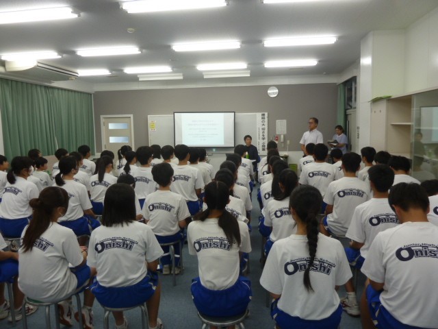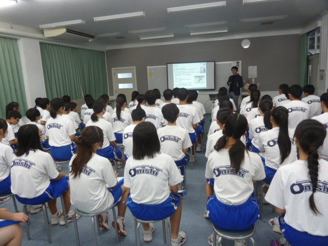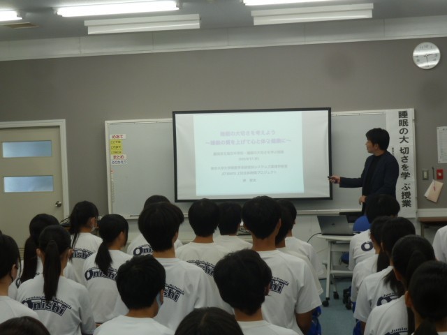6校時は、「睡眠の大切さを学ぶ授業」を行いました。東京大学大学院医学研究科の岸哲史先生を講師に迎え、全校で睡眠について学びました。講演のテーマは、「睡眠の大切さを考えよう ~睡眠の質を上げて心と体を健康に~」です。前半は、成長期における睡眠の大切さについて岸先生に解説していただきました。「睡眠は大切」だとは知っていますが、どうして大切なのかを分かりやすく教えていただきました。後半は、自分の眠りを改善する能力を身に付けるためにはどうしたらよいかアドバイスしていただきました。睡眠は、「量」と「質」と「リズム」が大切だということが分かりました。岸先生に教えていただいたことをもとに、日常生活で実践していきたいと思います。岸先生、貴重なお話をありがとうございました。