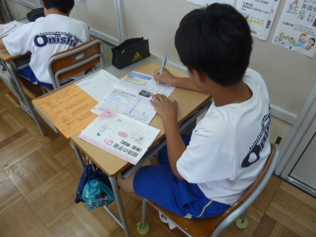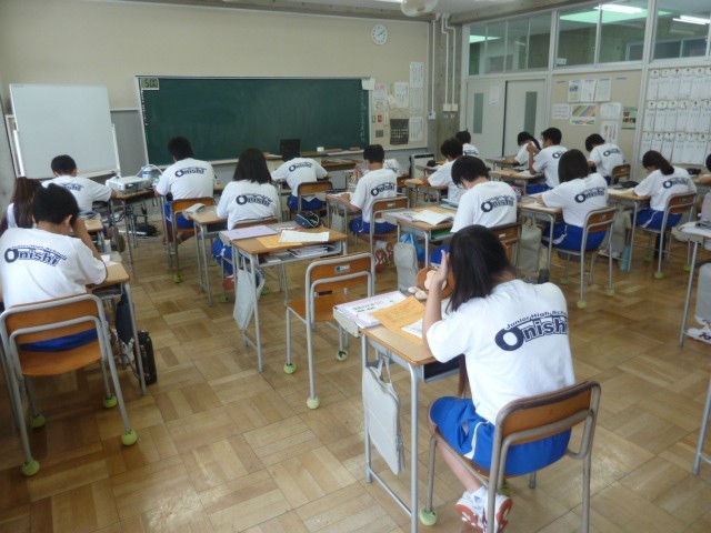 鬼石中学校では、10月2日(木)に2学期の中間テストを予定しています。生徒は、「国語」「数学」「理科」「社会」「英語」のテストに取り組みます。テスト範囲が伝えられ、生徒たちは家庭で復習し、テスト勉強に励みます。1年教室へ行ってみると、黙々とテスト範囲の勉強をしていました。誰一人しゃべることなく、集中して取り組んでいました。中間テストが終わった後に「よくがんばったなあ。」と自分で思えるくらい努力をしてほしいです。