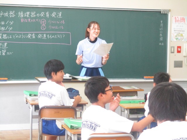 9月25日(木) 1年生(保健「呼吸器循環器の発育・発達」)【進んで学ぶ子】