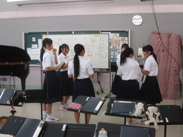 3年生の音楽は合唱の練習でした。10月22日の発表に向けて練習にも熱が入ります。今日は各パートに分かれて、音程や歌い方を確認しながら繰り返し練習していました。