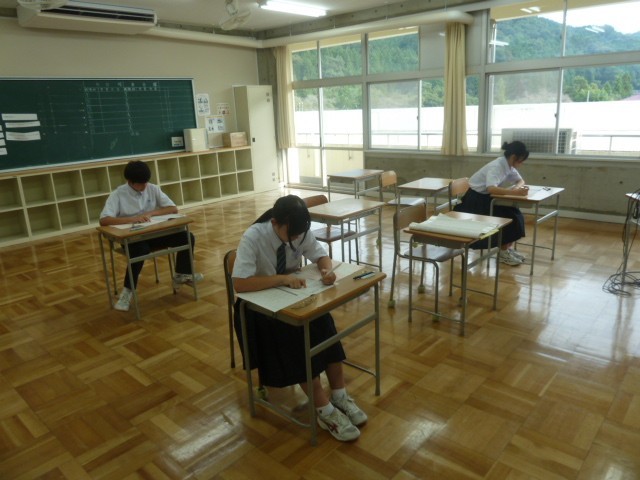 今年度2回目の英語検定を放課後に実施しました。生徒たちは今回「準2級」「3級」「4級」「5級」に希望者が挑戦しました。英語検定の問題集などを活用しながら、家庭で英語検定の勉強に取り組み、合格を目指して頑張ってきました。みんな集中して問題を解いていました。合格できるといいですね。(写真は3級を受検した生徒の様子です。)