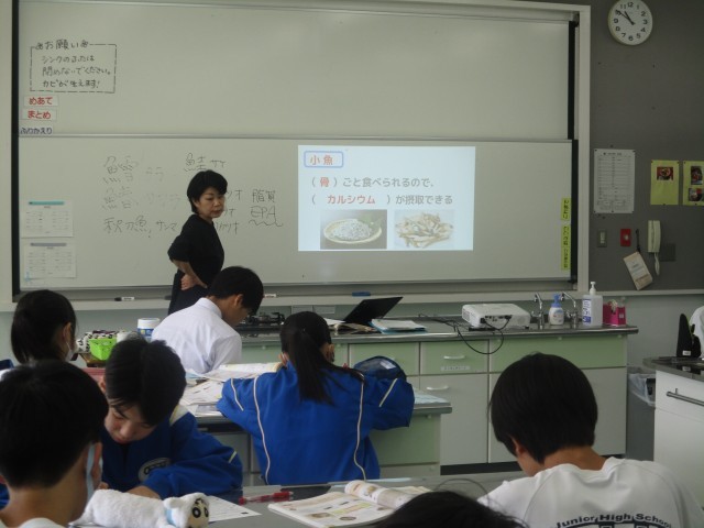 9月30日(火) 2年生(家庭科「魚の特徴や調理上の取扱い」)【進んで学ぶ子】