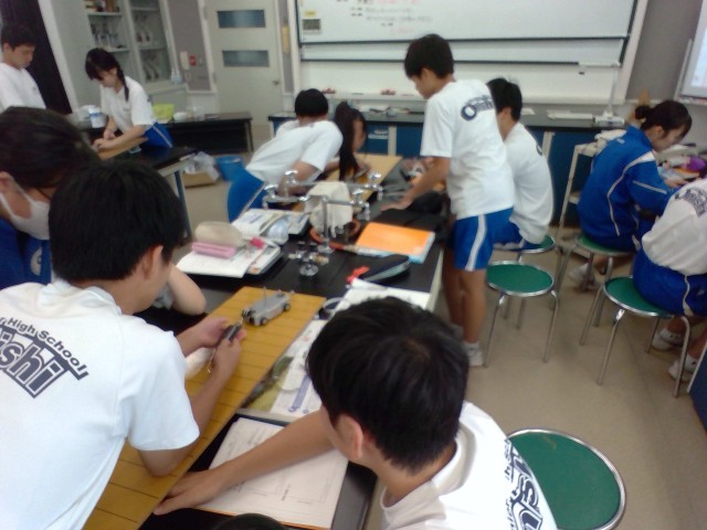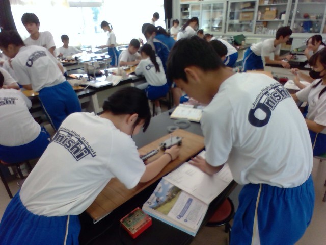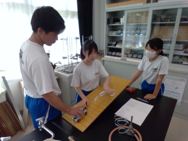 10月6日(月) 3年生(理科「だんだん速くなる運動」)【進んで学ぶ子】 公開日 2025/10/06 更新日 2025/10/06 できごと これまでに、力を受けていない物体の運動を学習してきました。では、力を受ける物体はどのような運動をするのでしょうか。ここでは、斜面と力学台車、ばねばかりを用いて実験します。斜面の傾きを変えて実験をしました。