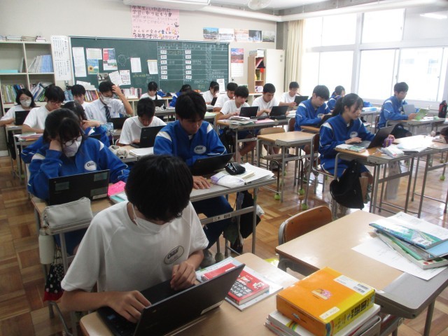 3年生の国語は、桜華祭でのビブリオバトルに向けて、紹介文の原稿を作成していました。お気に入りの本への思いを、原稿に力強く刻んでいました。