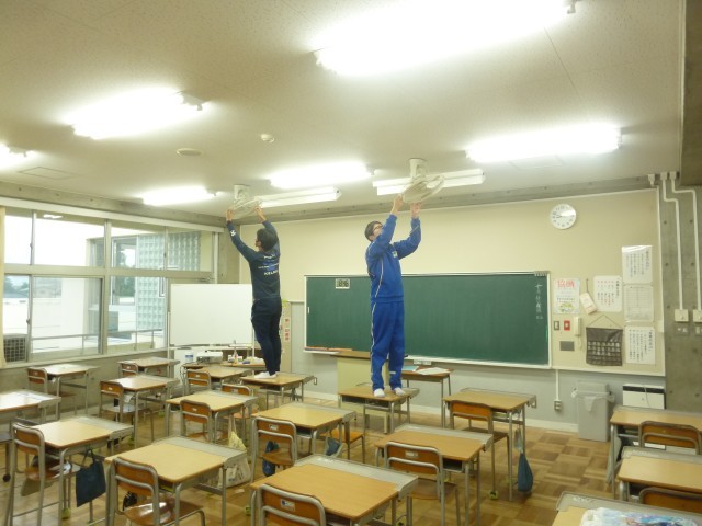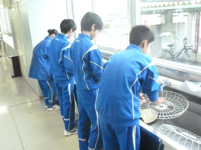 11日(土)にPTA親子環境整備作業を行いました。小雨が降るあいにくの天気だったので、屋内での作業が中心となりました。校舎の扇風機や蛍光灯の清掃、トイレの清掃、中庭広場の高圧洗浄機を使っての清掃などを行いました。保護者の皆様には休日にもかかわらず学校美化のために作業に参加していただきました。ありがとうございました。また、生徒の皆さんにも普段使っている学校をきれいにしてもらいました。お疲れ様でした。先週よりかなりきれいになった校舎で気持ちよく授業に取り組めることと思います。感謝です。
