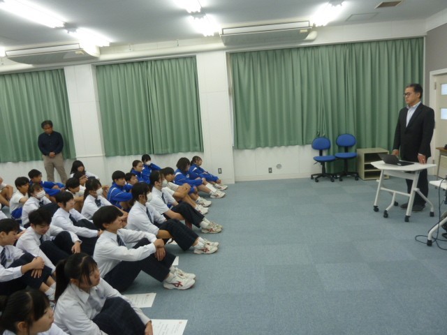 10月の朝礼・任命式を行いました。最初の任命式では、後期の委員会役員や学級委員の任命書を校長先生から一人ずつ渡しました。学校やクラスの中心として、積極的に活動してほしいです。後半は校長講話です。テーマは、「上士の道を歩むために」です。校長先生から生徒への質問がありました。「10月の生活目標の中に『本を毎週借りて読もう』があります。ちょうど10月の半分ですが、今のところ目標を達成できている人はどのくらいいますか?」手が上がった生徒の数は少なかったです。校長先生は「本を読みなさい」という代わりに、以下のような話をしました。「人間には上・中・下の3通りがあります。上士は道理のある話を聞くと、なるほどと納得し、直ぐに実行に移します。中士は道理のある話を聞くと、なるほどを納得はするが、実行しようとはしない。下士は道理のある話を聞いても、そんなことはできっこないと聞き流してしまいます。今の皆さんは、上士・中士・下士のどれですか?校長先生は、皆さんには上士の道を歩んでほしいと願っています。10月の残りの期間、読書に係わる目標達成に向けて、実行に移してみませんか?」今回の朝礼での校長先生の話を聞いて、「そうか、やってみるか。」と、直ぐに実行に移す生徒の皆さんの姿を期待しています。