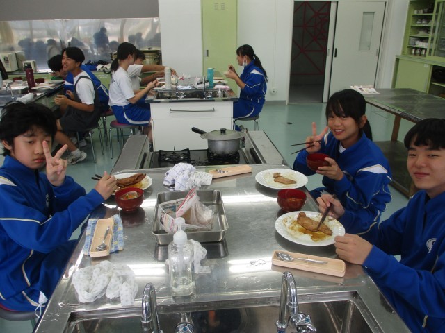 10月21日(火) 2年生(家庭「調理実習(実食)」)【進んで学ぶ子】