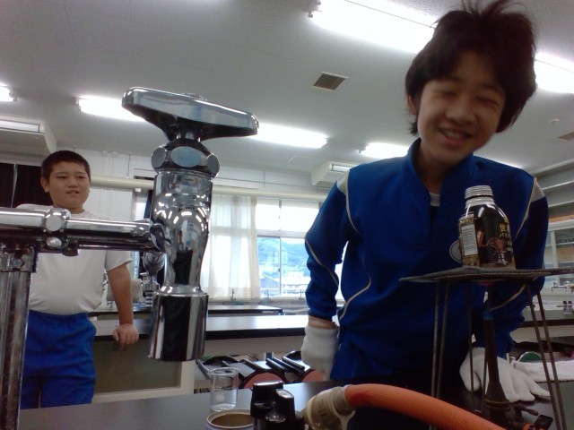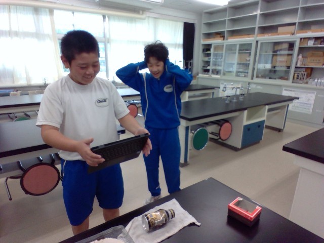 10月21日(火) 2年生(理科「空気の重さによって生じる圧力」)【進んで学ぶ子】 公開日 2025/10/21 更新日 2025/10/21 できごと これまで、圧力について学習してきました。今日は、空気の重さによって圧力が生じるのかを実験で確かめます。コーヒーの空き缶に少量の水を入れ、ガスバーナーで温めます。その後、フタをして濡れ雑巾の上に置きます。冷えると缶が音を立てて凹む様子が見られ、大気圧の大きさを実感することができました。