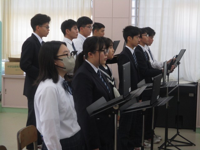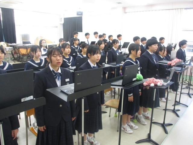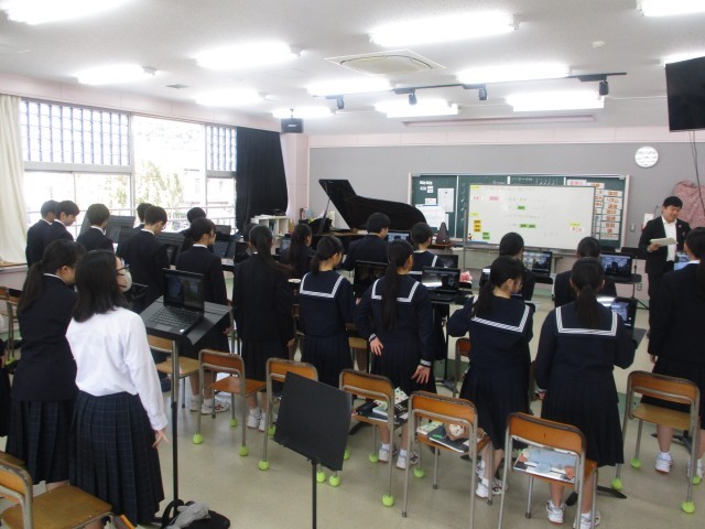 3年生の音楽は歌のテストでした。端末も活用しながら、テストに臨みました。昨日桜華祭で歌った「Let's search for tomorrow」がテストの課題曲でした。昨日とは違った緊張感が音楽室いっぱいに漂っていました。