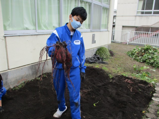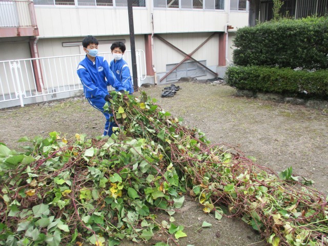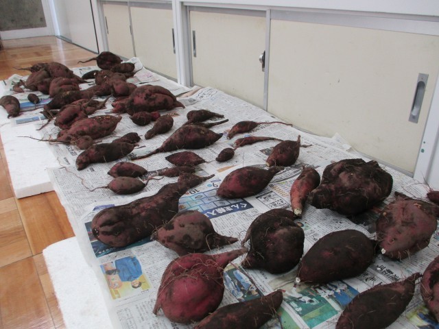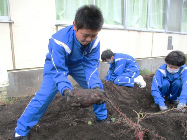 1、2年生の2、3組の生徒たちが、春に苗を植えたサツマイモの収穫をしました。立派なサツマイモがたくさんできました。