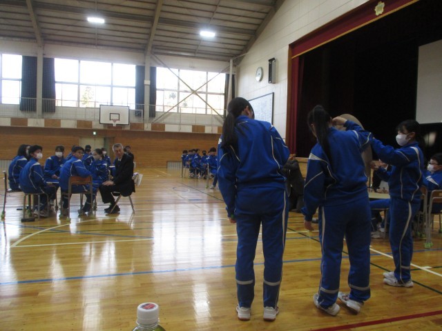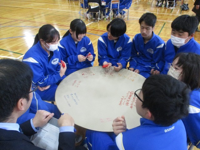 11月21日(金)に、学校運営協議会・鬼石中学校PTAの共催で、いじめ問題解決に向けた教育懇談会を実施しました。当日は、生徒、保護者、地域住民等、100名を超える参加者の下、懇談会を実施しました。中学生、大人に分かれ、いじめをなくすために私たちができる具体的な行動や考え方についてグループ協議しました。中学生は「いじめを生まないコミュニケーション」、大人は「いじめをなくすために見守る大人が子どもにどのように係わったらよいか」というように、それぞれ小テーマを決めて、それぞれの立場で考えました。熟議後、話し合ったことを全体で共有し、最後に運営協議会委員さんによる講評でしめくくりました。当日ご参加いただいた、保護者・地域の皆様、ご協力ありがとうございました。