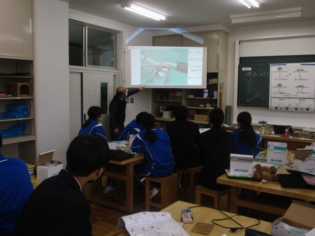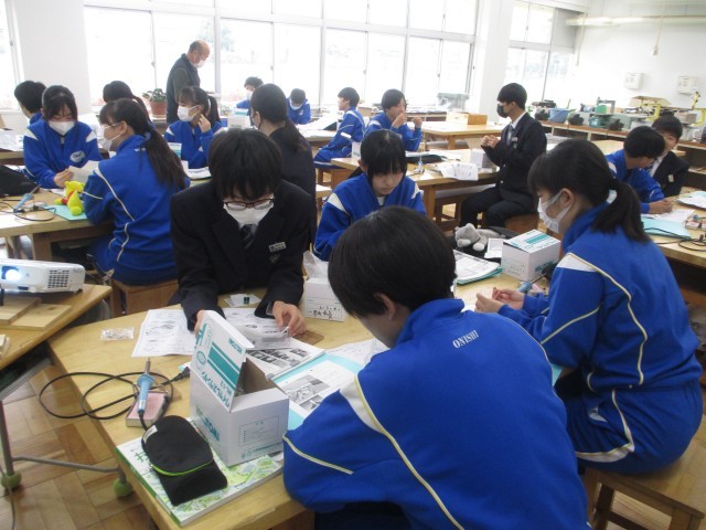 2年生の技術はラジオの制作でした。今日はハンダ付けについて学習しました。細かい作業になるので、適切にハンダ付けするのは意外と難しそうです。