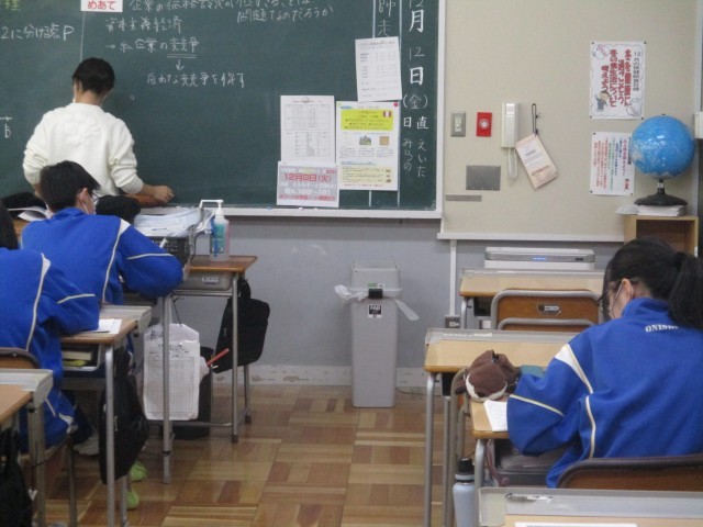 3年生の社会は株式会社のしくみの学習でした。今日は、企業の価格設定とその影響について学習しました。3年生はインフルエンザによる学級閉鎖明けで、数日ぶりに登校しています。元気に頑張ってほしいです。