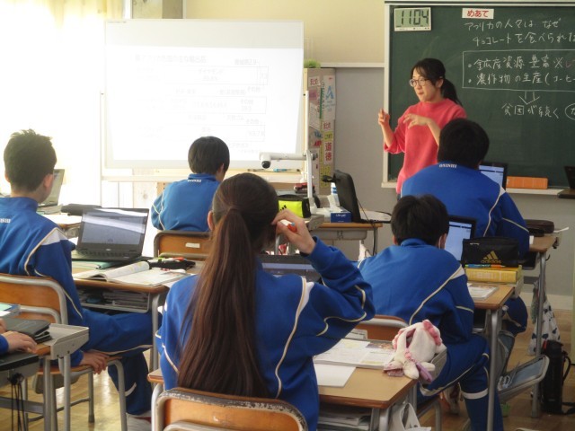 1年生の社会は、植民地支配の影響が残る産業についての学習でした。今日は、アフリカの人たちがなぜチョコレートを食べないのかを、植民地支配の影響という視点で考察しました。