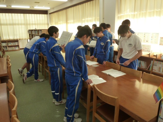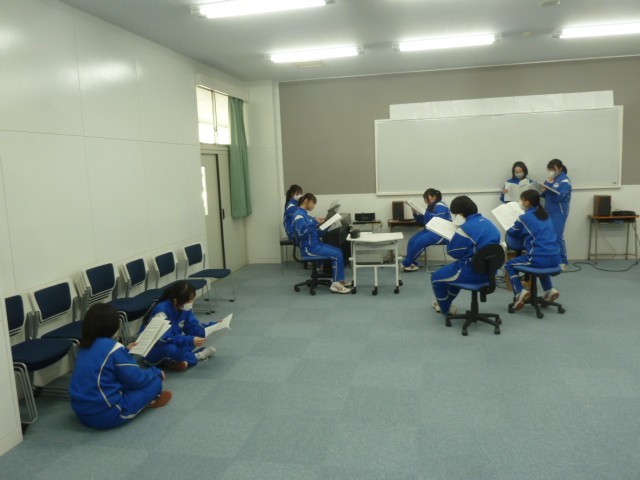 卒業式のメインとなるのが、「卒業証書授与」ですが、それと同じくらい生徒が重要に考えているのが、「卒業式で歌う歌」です。3年生の音楽の授業の様子を見に行くと、ちょうど卒業式で3年生が歌う歌の練習をしているところでした。「音楽室」「多目的室」「図書室」に分かれて、それぞれパートごとに練習です。女子は澄んだきれいな声で、男子は落ち着きのある声で歌います。始まったばかりですが、頑張っています。