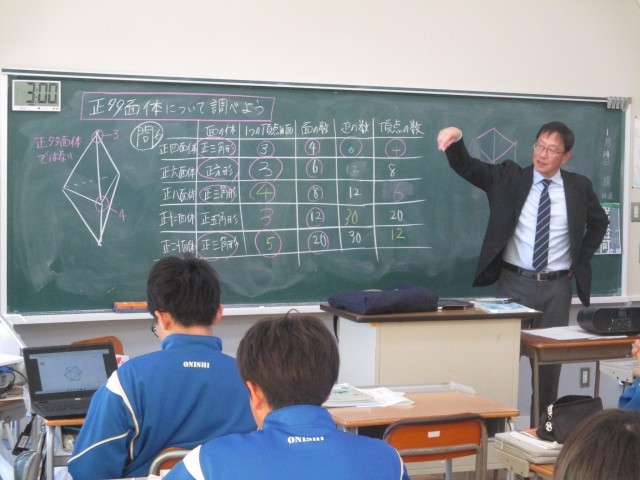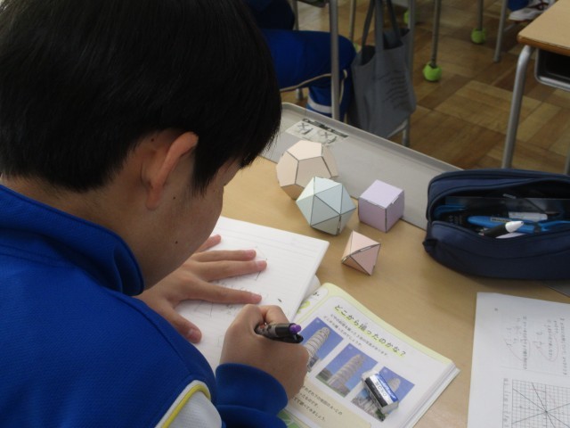 1月14日(水) 1年生(数学「正多面体について調べよう」)【進んで学ぶ子】