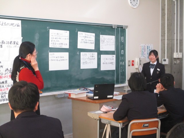 今日は、高崎人権擁護委員協議会から人権擁護委員の先生方をお迎えし、3年生を対象にした人権教室「みんなで考えるハンセン病」を実施しました。ハンセン病で隔離されてきた方々の声に耳を傾けながら、どのようにしたら差別や偏見はなくなるのかを考えました。人権擁護委員の先生方からは、人権の時代を生きる若い世代の人達が人権感覚や人権意識を磨き、未来をよりよい姿に変えてほしいと、メッセージをいただきました。