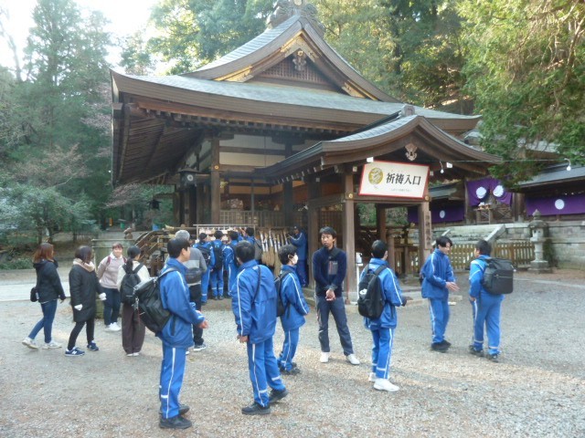 1時間あまり歩いて最初の目的地である「金鑚神社」に到着しました。まだまだ、子どもたちは元気です。2年生全員で参拝しました。「○○高校合格」「志望校に合格しますように」神社にかかっている絵馬に書かれた文字を見て、「私も来年は絵馬を書こう」「合格目指して頑張るぞ」と思い思いの言葉を発していた2年生でした。