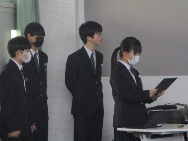 1月27日(火) 生徒集会(新生徒会本部活動スローガンの発表)【進んで学ぶ子】