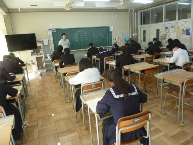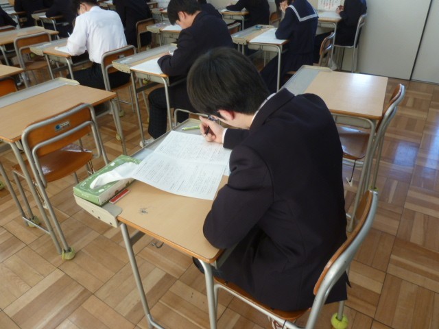 3年生の3学期末テストが今日から始まりました。3年生にとっては中学校生活で最後の定期テストとなります。どの生徒も正解を導き出そうと、真剣に問題に取り組んでいました。好結果になるといいですね。がんばれ、3年生。