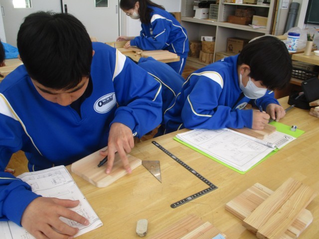 1年生の技術はティッシュ&小物入れの制作でした。それぞれ、ひつような作業をしっかり進めていました。
