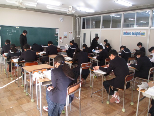 3年生の英語は読み物の読解でした。かなり長い文章を読み込んで、その内容について答える課題に取り組んでいました。