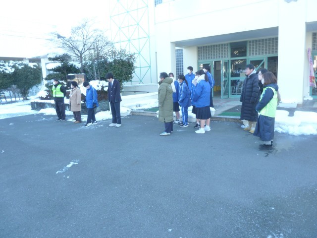寒さが厳しい中ではありましたが、今朝は3学期鬼石中あいさつ運動を行いました。地域住民の方にも参加いただいてのあいさつ運動です。ありがとうございました。あいさつの輪をどんどん広げていきたいです。