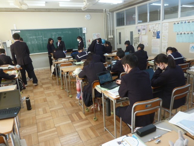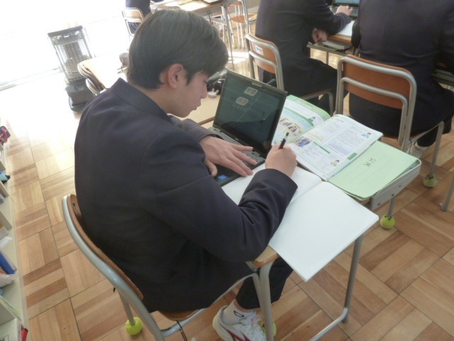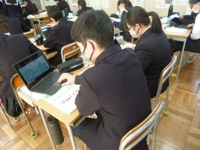 3年生の社会は、「わたしたちと国際社会」を学習しました。持続可能な社会をめざして、私たちの課題をレポートにまとめます。これまでに学習したことを全て活用しての学習となります。3年生の教室へ行ってみると、自分のテーマを考えているところでした。担当の先生にも相談に乗ってもらいます。何人かに取り組もうとしているテーマを聞きましたが、なかなか難しいテーマになっています。頑張ってレポートにまとめてほしいです。