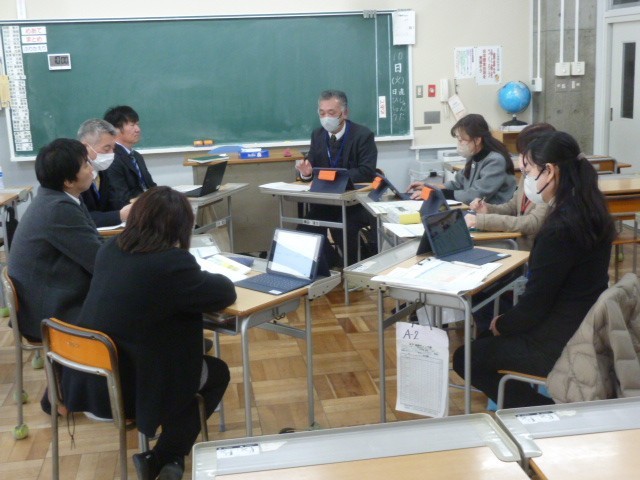 放課後は鬼石北小、鬼石小、鬼石中の教職員が鬼石中に集まり、今年度3回目の合同研修会を行いました。前半の全体会では、各校の校内研修の実践を発表し合い、共有化を図りました。後半は「総合的な学習の時間」「生徒指導」「校内研修・人権教育」「養護教諭」の各部会に分かれて、協議を行いました。今年度の活動を振り返りながらまとめをし、来年度に向けた取組について意見交流をしました。熱が入った議論が交わされ、予定時間を延長してまで話し合いをする部会もありました。「子どもたちの笑顔のため」に研修に励んでいます。