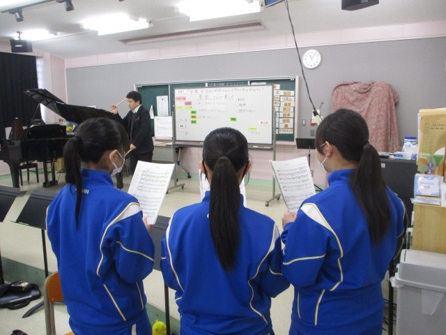 2月12日(木) 2年生(音楽「合唱の練習」)【進んで学ぶ子】