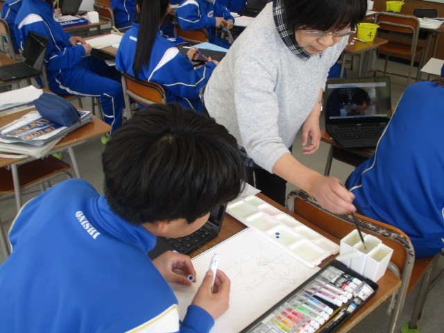 2月13日(金) 1年生(美術「水彩画」)【進んで学ぶ子】