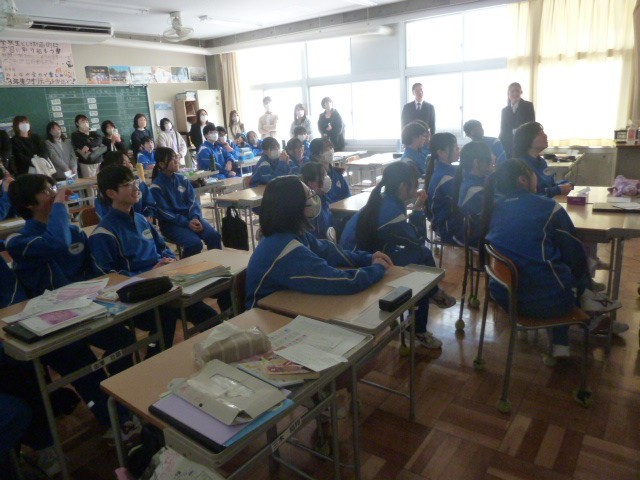 今日の5校時は授業参観でした。3年生は、「学級卒業式」を行いました。3年間の中学校生活を映像で振り返る思いムービーの上映会やクラスのみんなへのメッセージなど、盛りだくさんの内容でした。お家の方々が見守る中で、温かい雰囲気の学級卒業式となりました。本番の卒業式は、3月13日(金)です。