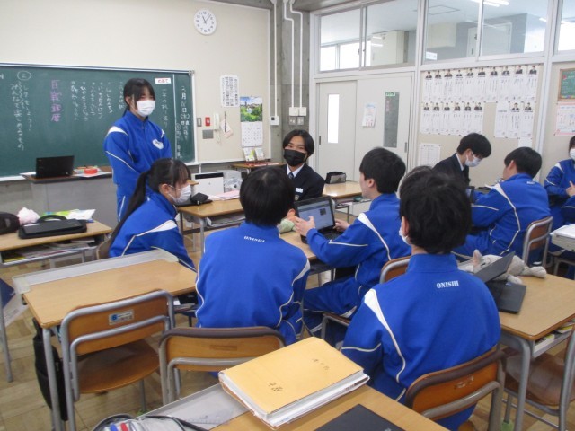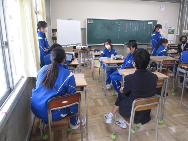 2年生は学級活動でした。今日の議題は「学年レクの実施に向けて」ということで、小グループに分かれ話し合いを進めていました。